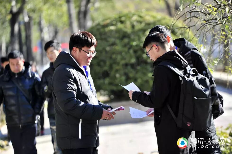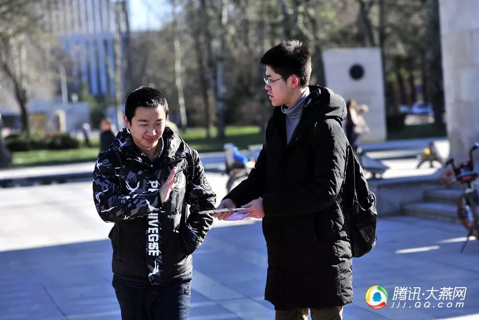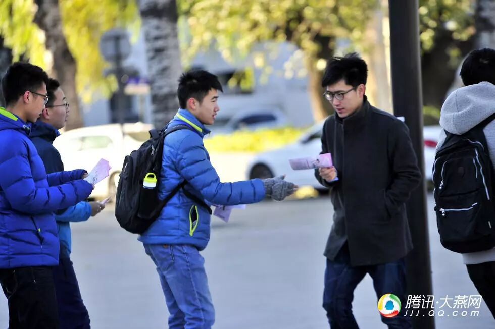 图为志愿者在校园内分发调查问卷
