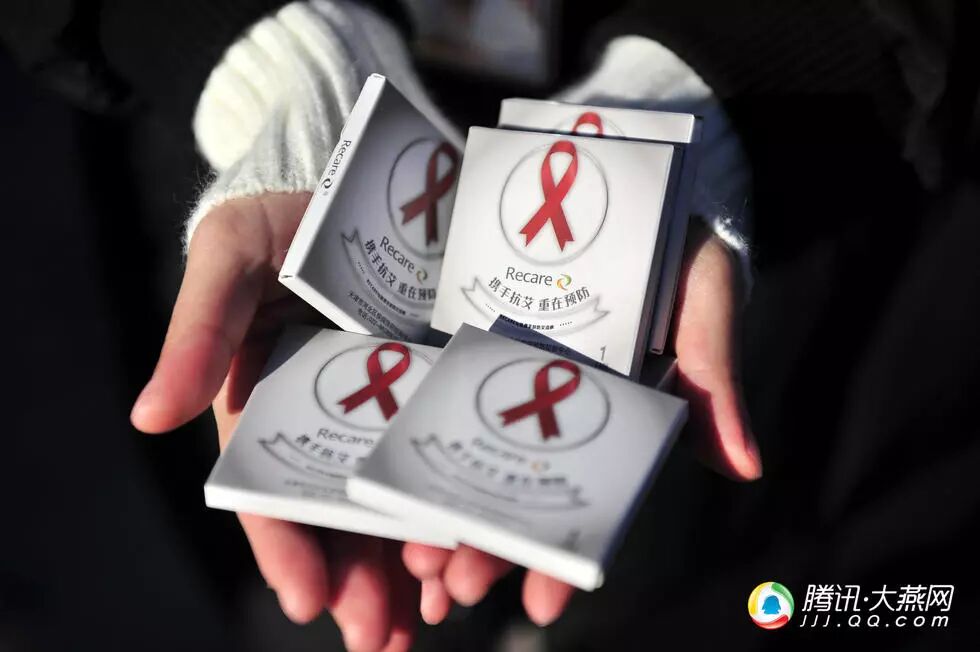 志愿者们在天津大学、南开大学、天津中医药大学的校园内,分发安全套及宣传材料,并邀请年轻学子填写调查问卷,了解学生们对于艾滋病的认知情况。